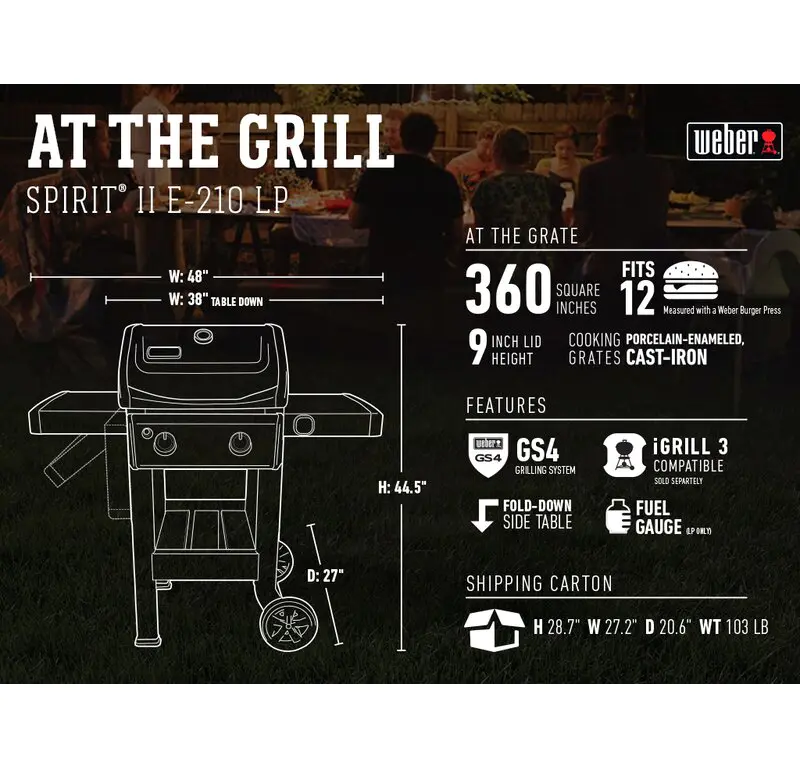 • Weber’s propriety, high-performance burners are designed to produce the most efficient, even flame for consistent, precise heat and reliable ignition
