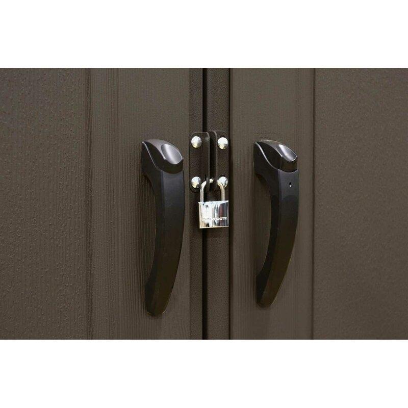 Description Lifetime's outdoor sheds combine quality materials with innovative design, offering a convenient storage solution that maximizes storage potential. Combined with superior value and the ability to withstand nature's day-to-day abuse. Double-wall, steel-reinforced construction and steel roof trusses make the sheds structurally sound, so they won't buckle during storms or dent during everyday use.