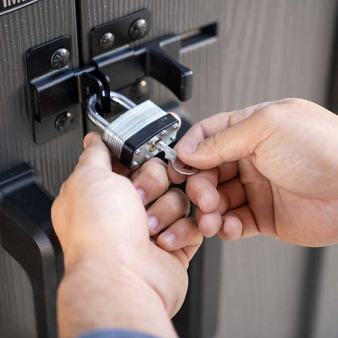 • Slider Latch Locking System with Padlock Loops (lock not included)