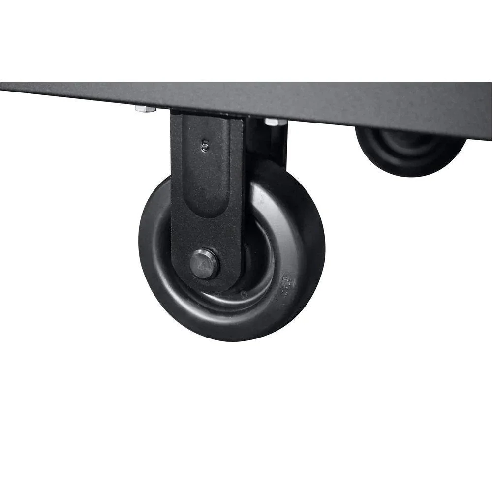 The Husky 80 in. x 10 drawer Garage Workcenter and Side Locker unit is a heavy duty, 19-Gauge steel, 3 piece tool storage unit that is rated for 3,000 lb. loading capacity. The 24 in. D garage chest features a garage lid that lifts up and slides into top unit as well as a pegboard and thick mat for a large workable area. This 3 piece unit also features 10 drawers and side locker creating 84,025 cu. in. of storage capacity. Drawers are equipped with 120 lb. rated soft closing slides. The extra deep bottom drawers and full length top drawer have double 120 lb. slides and provides convenient storage for larger and longer items. Premium drawer liners are included. The built in full length power strip includes 8 outlets and 2 USB ports in top cabinet and 6 outlets and 2 USB in side of bottom cabinet, making it easy to keep all of your tools charged. Also included is a rechargeable magnetic LED work light. This light charges via a USB connection, has 3 light modes, a recessed folding hook, and produces up to 360 Lumens. For added security, all 3 pieces are fitted with a barrel key lock system. The side locker bolts on to the side of the unit and is 19 in. W x 21 in. D x 71 in. H and features two adjustable shelves. This toolbox weighs in at 711 lbs. This unit has six 5 in. x 2 in. heavy duty industrial grade swivel casters with brakes and 2 non swivel. This 3-piece garage storage unit has 3,000 weight capacity and features a side locker with adjustable shelves.