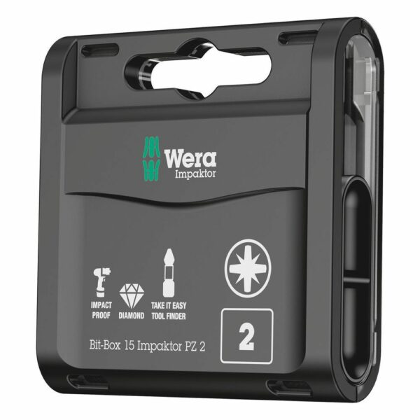 Wera PZ2 25mm Impaktor Diamond Impact Slide Screwdriver Bit Box – Pack of 15 X 5